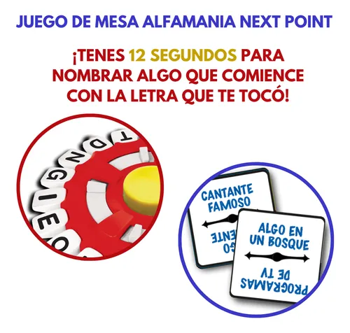Alfamanía es un emocionante juego de palabras ideal para adolescentes y adultos. En este juego, los jugadores tienen solo 12 segundos para decir una palabra que comience con la letra que les toque. El objetivo es poner a prueba la rapidez mental y el vocabulario de los participantes mientras se divierten en cada ronda. Cada turno es un desafío, ya que el tiempo es limitado, y si no logras decir la palabra a tiempo, el turno pasa al siguiente jugador. Es perfecto para jugar en familia, con amigos o en reuniones sociales. Con Alfamanía, mejorarás tu agilidad mental y tu concentración, mientras disfrutas de momentos divertidos y competitivos. Este juego es ideal para regalar y fomentar la interacción social. ¡Atrévete a aceptar el reto y demuestra cuán rápido puedes pensar bajo presión!