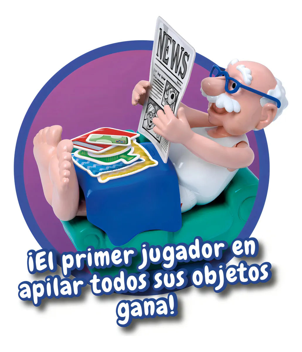 ¿Puedes apilar y hacerle cosquillas sin que se caiga? Pon un objeto en equilibrio sobre el abuelo y hazle cosquillas en los dedos de los pies, pero cuidado... si le haces cosquillas demasiado, no podrá controlarse. ¡Su periódico y su manta saldrán volando, lanzando tus objetos por todas partes! El primer jugador que apile todos sus objetos sobre el abuelo sin asustarlo será el ganador.