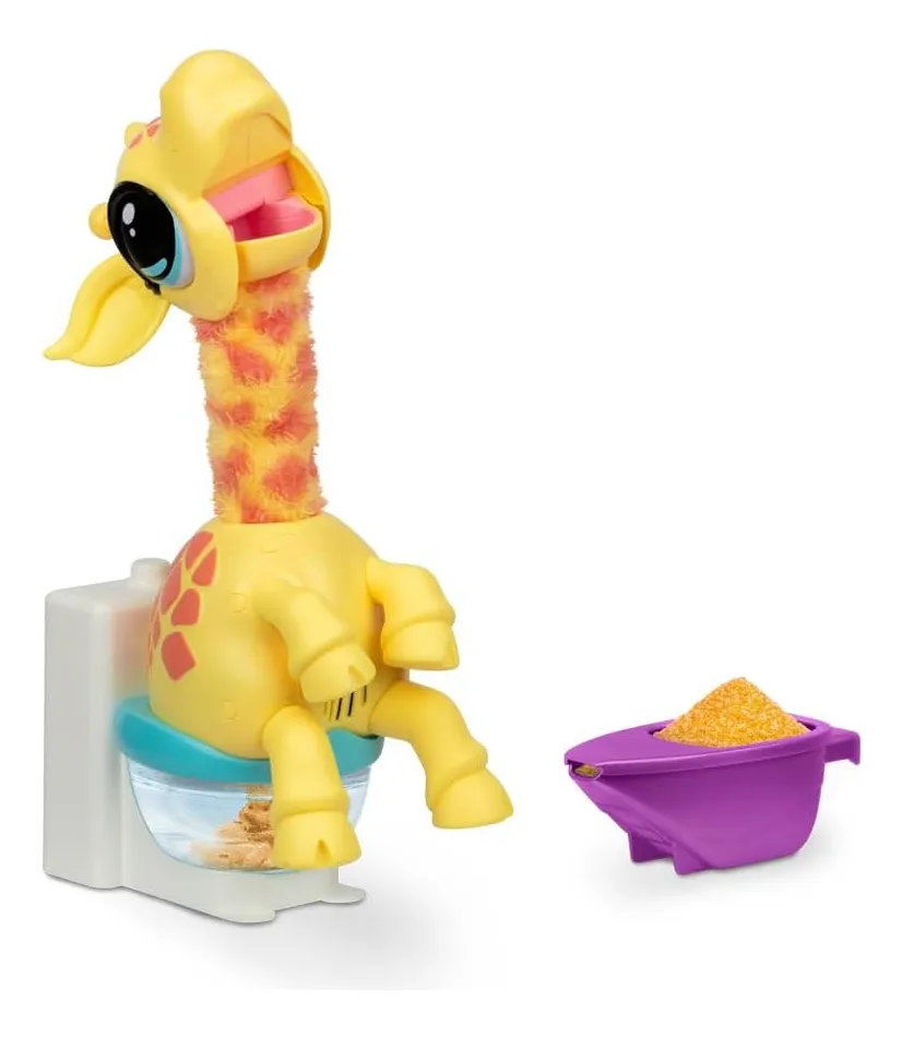 Juego sin manchas y repetido: Una vez que Gigi hace su “magic poop”, volcá el contenido del inodoro en la pala y mirá cómo la caca mágica se seca y se convierte nuevamente en comida para seguir jugando una y otra vez.