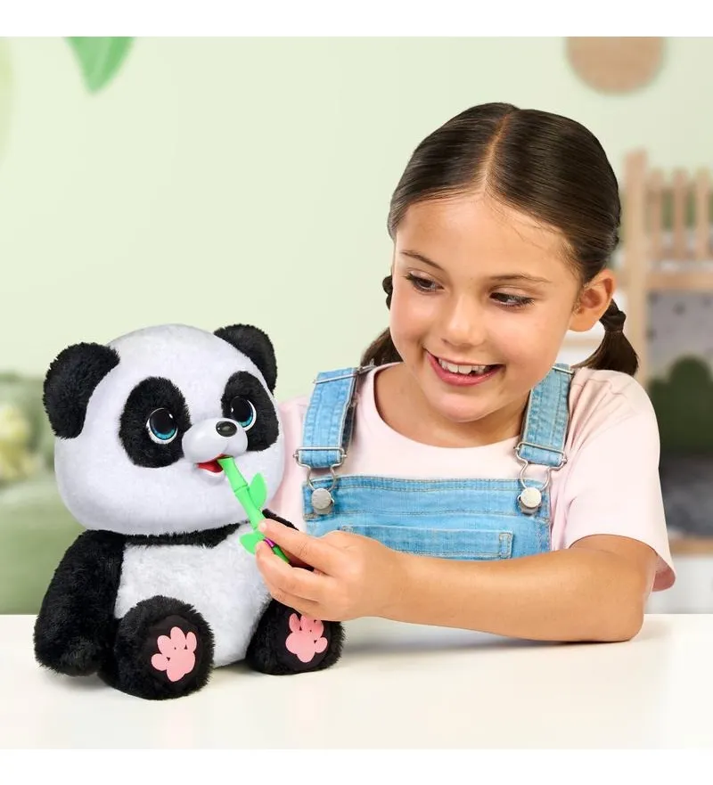 Con sus más de 50 sonidos y reacciones, ChuChu es superadorable: se comporta y emite sonidos como un panda bebé de verdad. Dale de comer el accesorio de bambú; cuando tenga ganas de ir al baño, agitará los pies. ¡Siéntalo en el orinal para que haga el baile del popó y descubre una caquita! Cuida y mima a My Baby Panda.