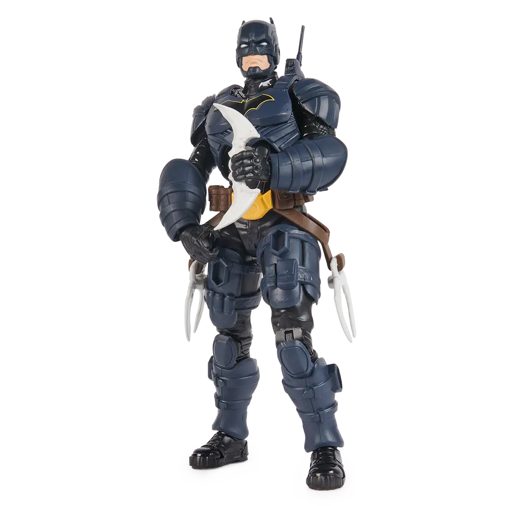 Batman | ¡Llevá a casa al héroe de Ciudad Gótica! Esta impresionante figura de Batman de 12″ cuenta con 17 puntos de articulación para infinitas poses heroicas y 16 piezas de armadura intercambiables, incluyendo su clásico Batarang y gancho de agarre.