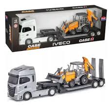 El camión Iveco S way Transportando maquinaria pesada de Case Construction. Remolque articulado con enganche. Con rampa para carga y descarga. Pueden variar los colores del camion.