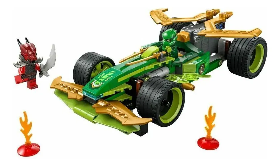 Los niños y las niñas a partir de 7 años podrán interpretar la trepidante acción de la temporada 3 de la serie NINJAGO®: El renacer de los dragones con el Coche de Carreras con Motor de Carga Manual de Lloyd.