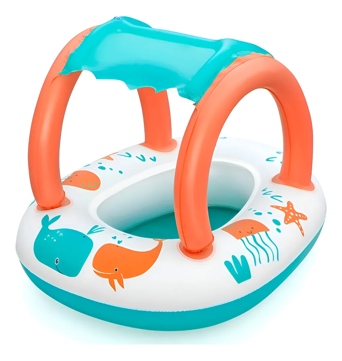 • 1 bote inflable acolchado con sombrilla UV desmontable.