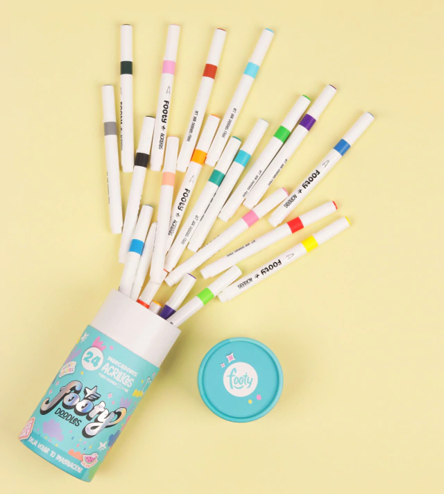 Set de 24 marcadores de colores brillantes e intensos tapa de cierre segura, punta redonda. Vienen en un recipiente de tubo para llevarlos a todos lados!