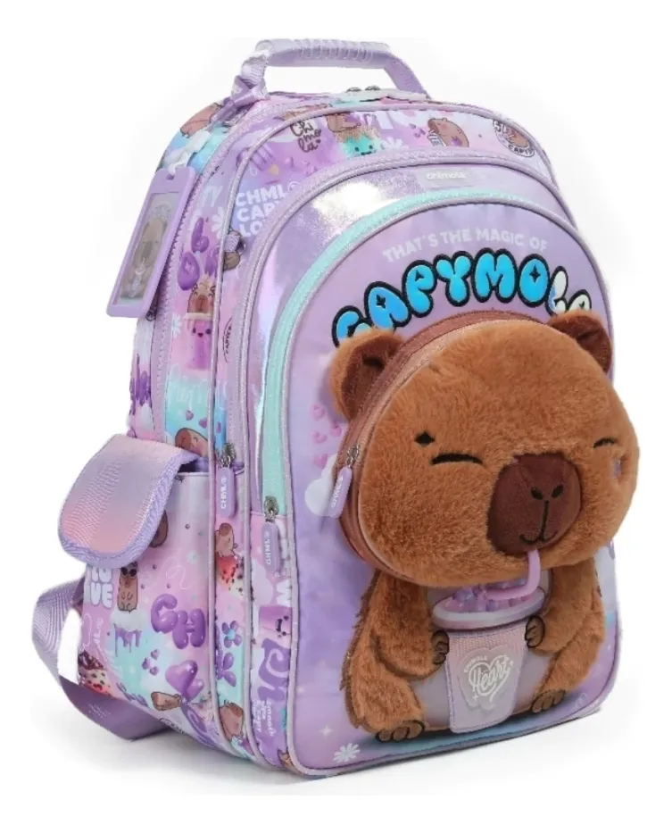 Fabricada en poliéster, es resistente y duradera, perfecta para el uso diario en la escuela. Su diseño incluye un cierre seguro y un bolsillo para botella, lo que la hace práctica para llevar todo lo necesario.