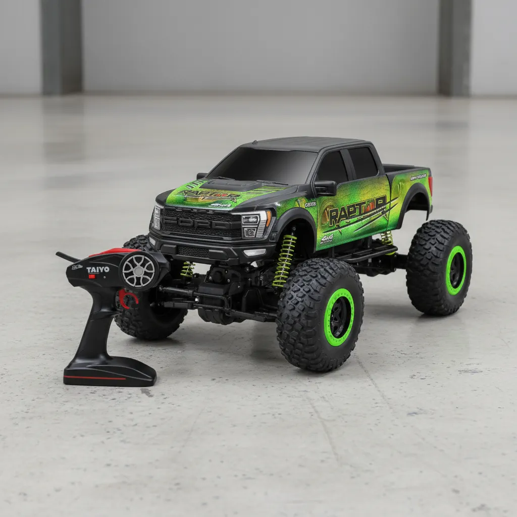 Domina la aventura con la camioneta a control remoto Ford F-150 Raptor de Taiyo, un todoterreno en escala 1:8 diseñado para brindar potencia y diversión sin límites. Con su tracción 4x4 y suspensión completa, este vehículo está preparado para enfrentar terrenos difíciles, desde tierra y pasto hasta grava y superficies irregulares.