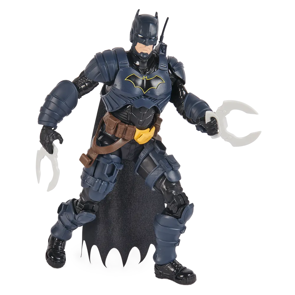 Batman | ¡Llevá a casa al héroe de Ciudad Gótica! Esta impresionante figura de Batman de 12″ cuenta con 17 puntos de articulación para infinitas poses heroicas y 16 piezas de armadura intercambiables, incluyendo su clásico Batarang y gancho de agarre.