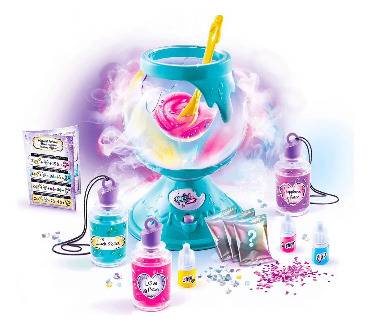Combiná polvo mágico, glitter, decoraciones misteriosas y mirá cómo tu slime se transforma en una mezcla encantada.