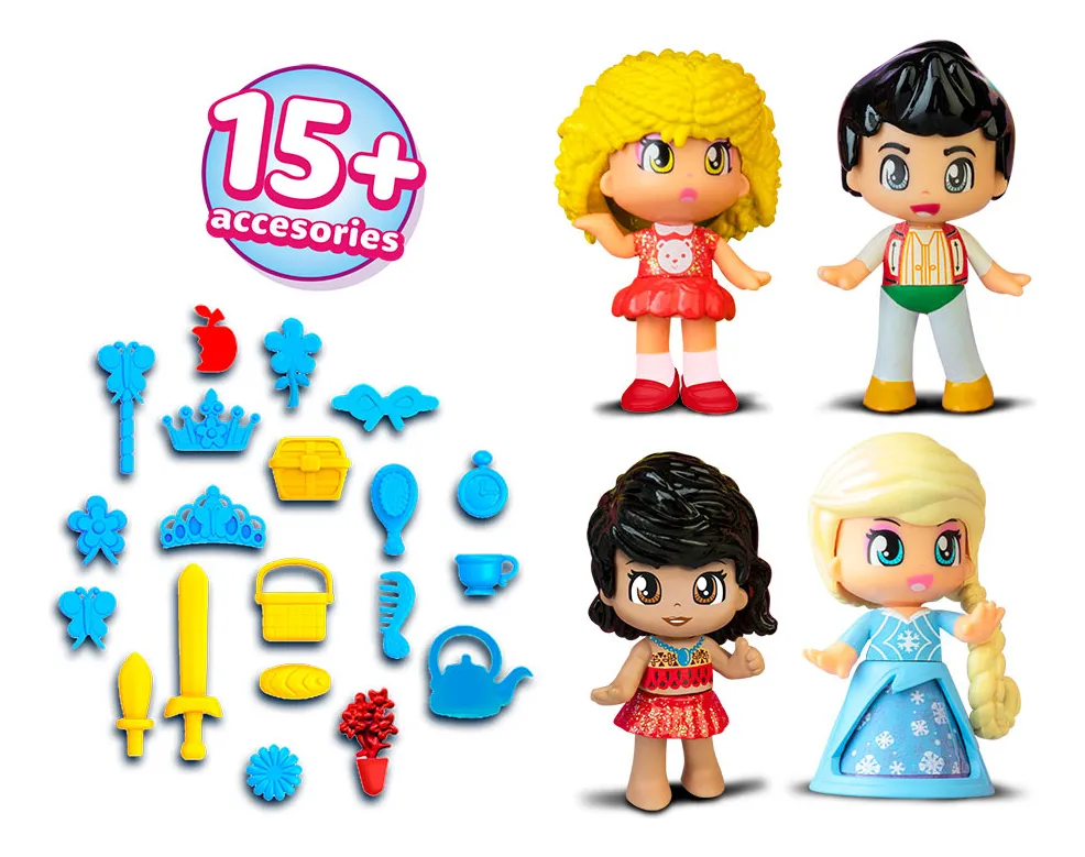 Pinypon Tales es un set especial de 4 figuras articuladas inspiradas en los personajes más queridos de los cuentos clásicos. Cada figura viene acompañada de accesorios que permiten recrear escenas mágicas y jugar de manera creativa.