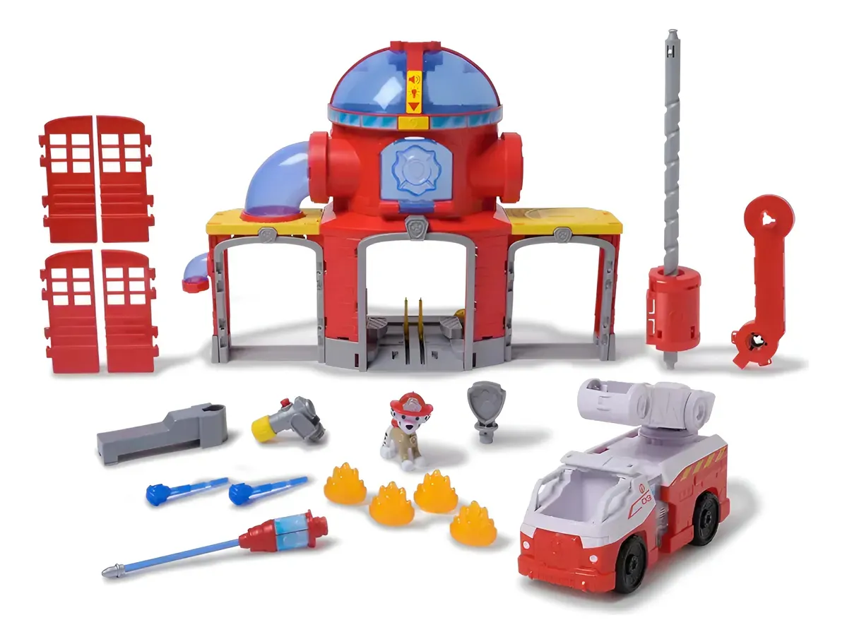 Paw Patrol Fire Rescue Command Center es un playset interactivo que convierte cada juego en una misión de bomberos con la Patrulla Canina. Esta estación de rescate cuenta con múltiples áreas de juego, ideal para recrear emergencias y coordinar a los cachorros en acción.