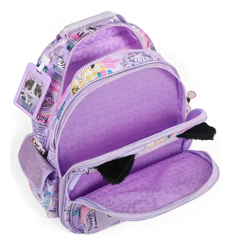Esta mochila es super XXL inspirada en una tarde de té con detalles encantadores, combina practicidad con un universo mágico. Tiene 3 compartimentos principales y un bolsillo frontal amplio con terminaciones holográficas y una textura brillante. Su moño con campanita colgante suena suavemente al andar, y las orejitas peluditas con brillos le dan un toque único que roba miradas. Está confeccionada en tela impermeable, ideal para el uso diario, e incluye bolsillos laterales —uno con solapa y otro ajustable— perfectos para tener tu botella siempre a mano. Los pullers de goma del personaje suman un guiño lúdico, y el tag personalizado te permite llevar tus datos con estilo. Medidas: 31,5x45,5 cm; profundidad: 19,5 cm
