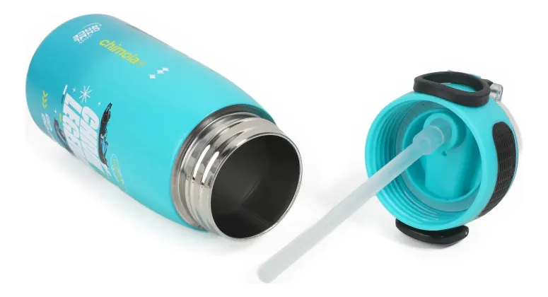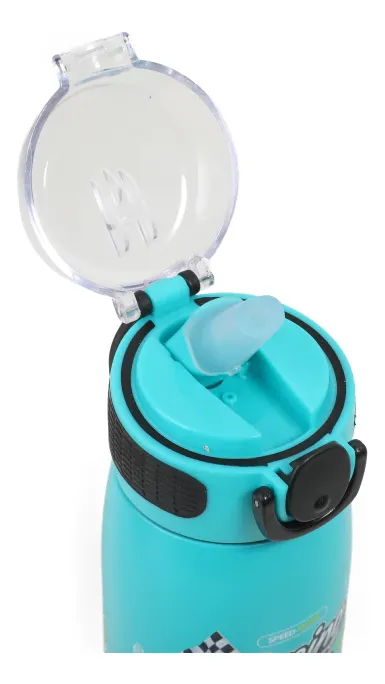 Botella Térmica Infantil Tapa: Polipropileno (PP) con detalles de silicona. Libre de BPA. Boquilla de silicona. Tapa con mecanismo de apertura tipo flip. Sistema de cierre de seguridad con botón y traba plástica. Impresión 5D de alta calidad. CAPACIDAD DE LA BOTELLA 470 ml